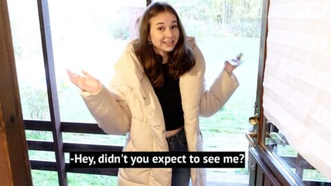 STUCK4K. Guests are about to come but man fucks girl's trimmed pussy
