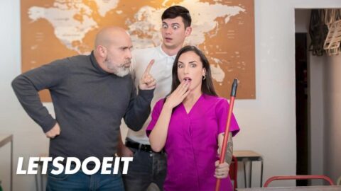 Hot Wife gets two dicks in her ass from her Husband and Stepson after Cheating at a corporate party!